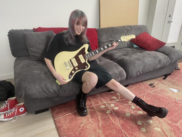Here’s a great photo of Chloe and her new guitar!